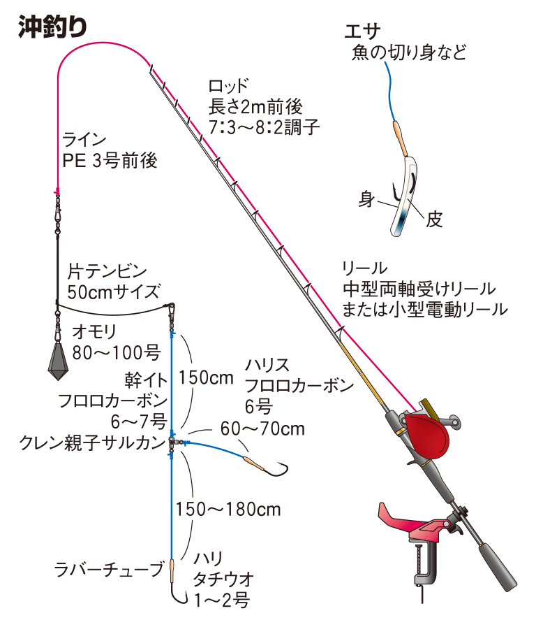 갈치는 시각과 냄새에 민감한 어종이기 때문에 미끼 선택이 매우 중요합니다. 텐빈채비에서는 미끼의 자연스러운 움직임이 핵심입니다.