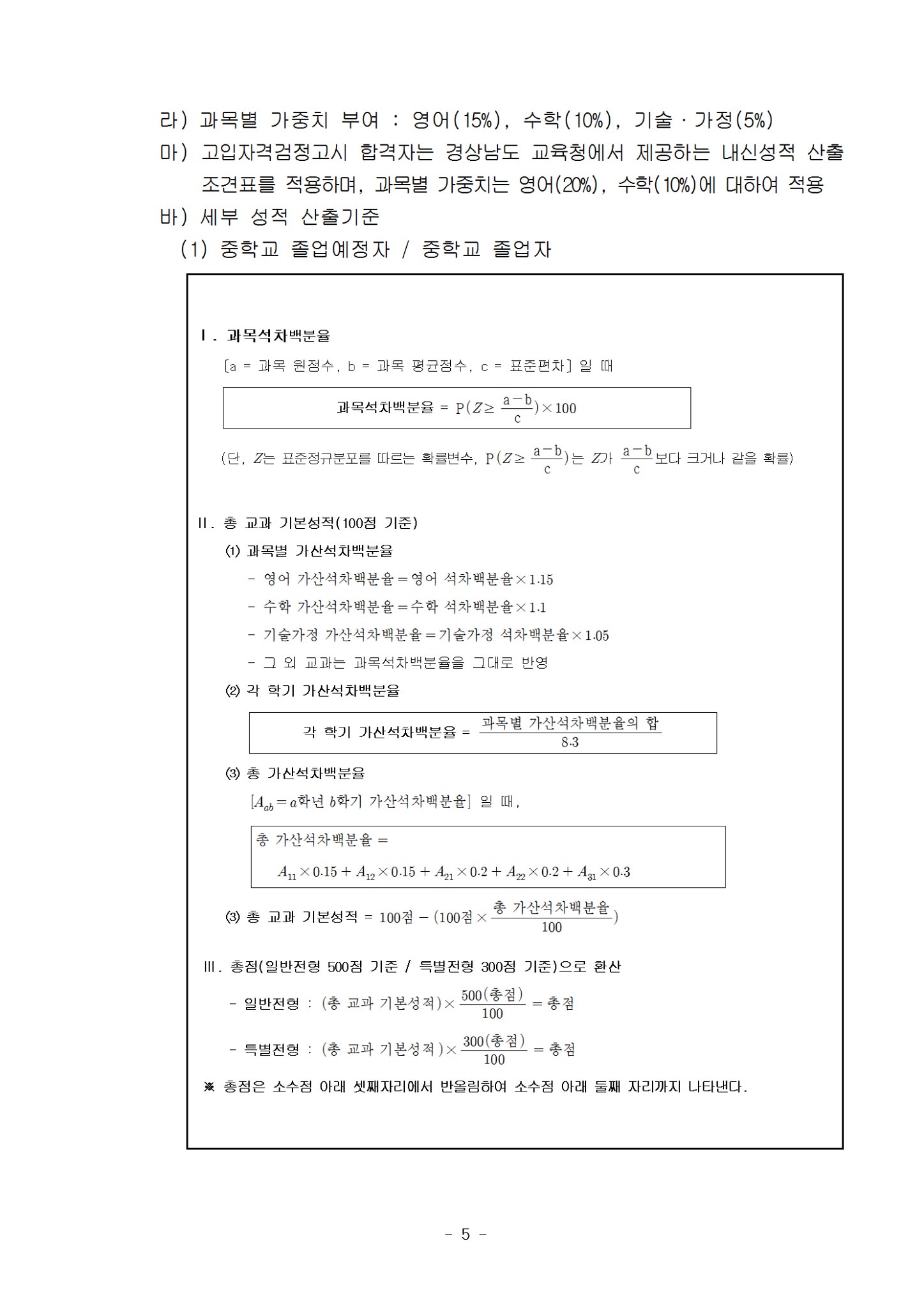 - 내신 성적: 국어, 영어, 수학, 사회, 과학 중심