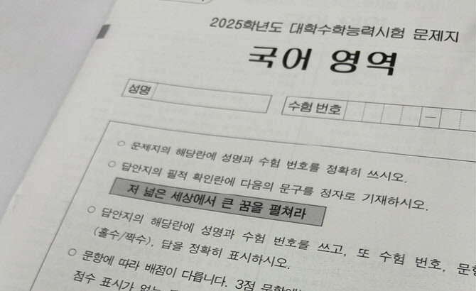곽의영 "하나뿐인 예쁜 딸아" 중에서 "저 넓은 세상에서 큰 꿈을 펼쳐라" - 2025 수능 필적확인 문구