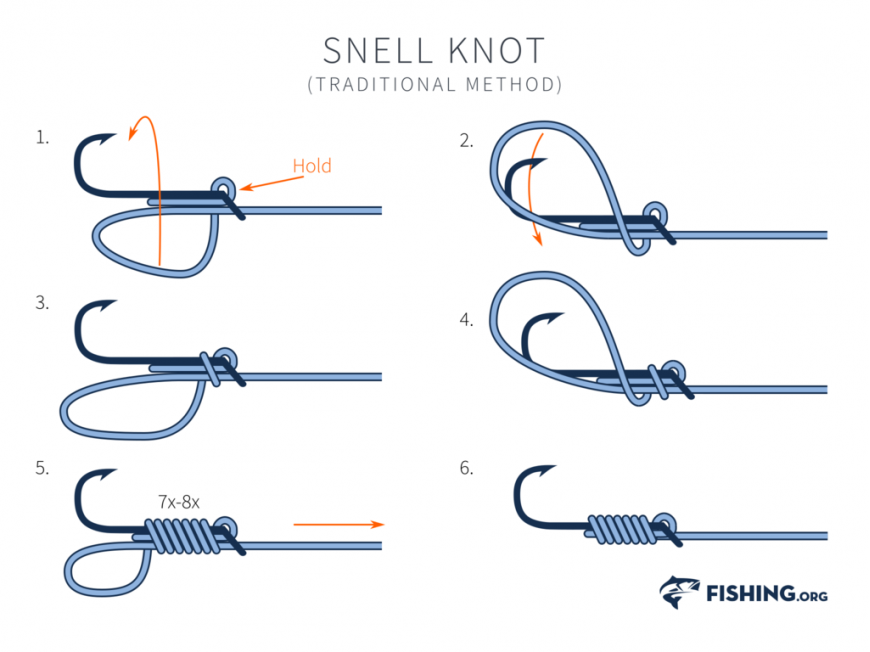 스넬 노트는 바늘의 샹크(몸통)에 라인을 감아 바늘과 라인이 일직선이 되도록 만드는 매듭입니다. 훅셋 순간 힘 전달이 매우 효율적입니다.