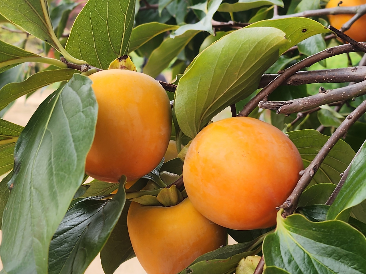 대봉감은 가을의 대표적인 과일로, 우리나라 감 품종 중에서도 크기와 당도가 특히 높은 품종입니다. 주로 경상남도 함안, 진영, 창원, 전남 영암, 나주 등 남부 지역에서 재배되며, 감나무 중에서도 대과종(큰 과일 품종)에 속합니다.