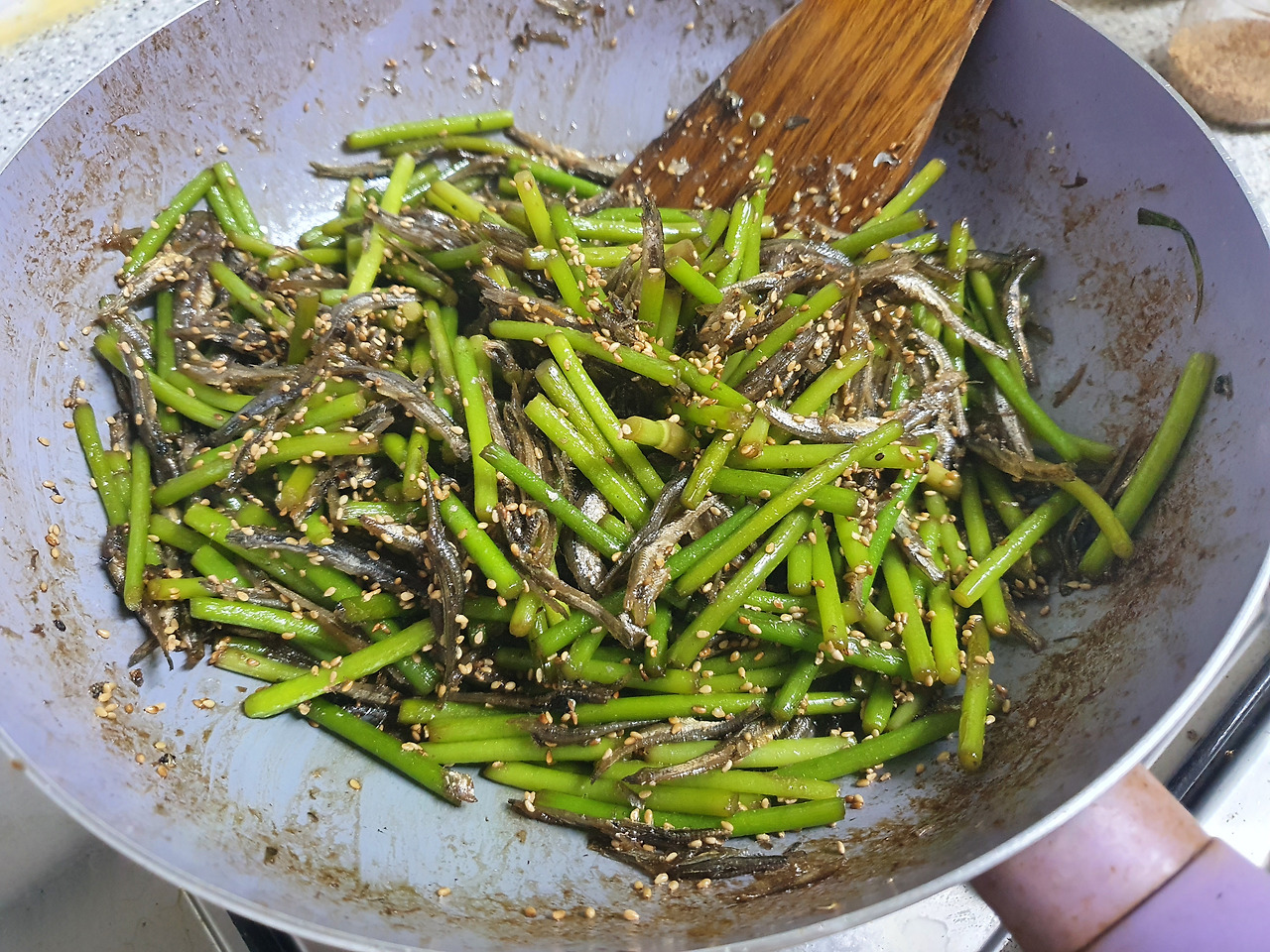 완성된 마늘쫑볶음은 밀폐 용기에 담아 냉장 보관 시 3~4일 정도 유지됩니다. 다시 데울 때는 전자레인지보다 팬에 소량의 물을 넣고 약불에서 데우는 것이 식감을 살리는 데 유리합니다. 남은 마늘쫑볶음은 김밥 속재료나 비빔밥 고명으로 활용해도 좋으며, 달걀과 함께 볶아 간단한 한 그릇 요리로도 응용할 수 있습니다.