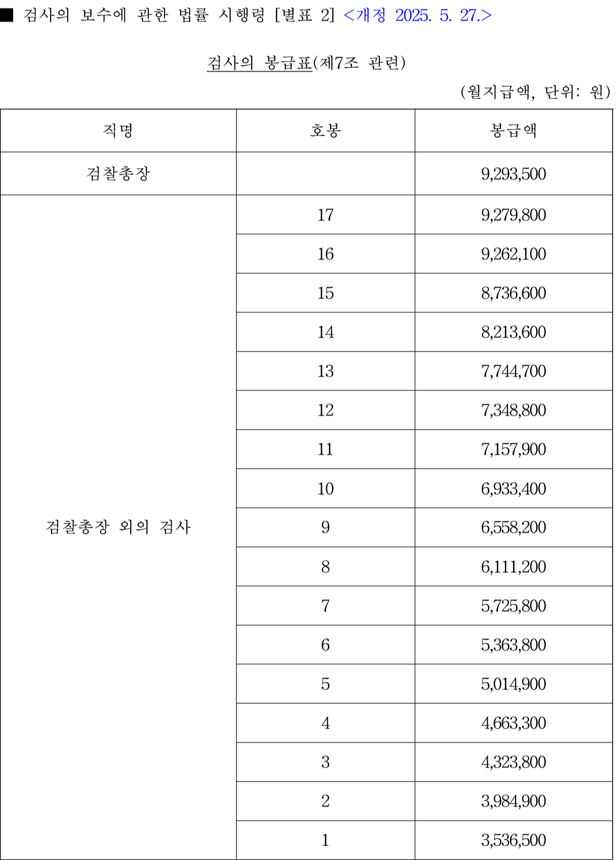 - 법조경력 10년 미만 검사: 500,000원
