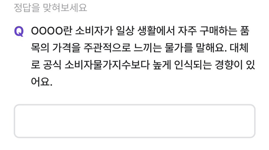 체감물가는 뉴스나 경제 기사에서 자주 등장하지만, 정확한 의미를 설명해 달라고 하면 막연하게 “물가가 비싸다고 느끼는 것” 정도로만 이해하는 경우가 많습니다. 그러나 비트버니 퀴즈는 이 개념을 짧은 문장으로 명확하게 정의함으로써, 체감물가가 공식 지표와 어떻게 다른지를 분명히 짚어주었습니다.