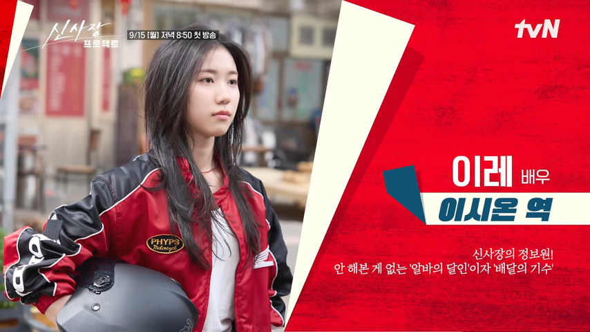 이시온 - 이레 생활력 강한 배달 요원으로 ‘현장 감각’을 팀에 공급하며 신사장의 플랜을 가속합니다.