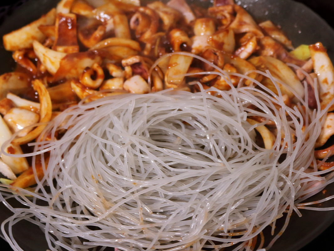 그 다음 오징어를 넣는 타이밍이 중요합니다. 양념이 어느 정도 끓어오른 뒤 오징어를 넣어야 비린 맛 없이 깔끔하게 조리됩니다. 오징어를 넣은 후에는 2~3분 이내로 빠르게 볶아야 합니다. 너무 오래 볶으면 질겨지기 때문에 시간 관리가 핵심입니다.