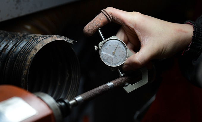 원목 내부를 정밀하게 뚫어 동관을 삽입하는데, 이는 필기구가 쉽게 뒤틀리거나 부서지지 않도록 강도를 보완하는 과정입니다. - 형태 가공