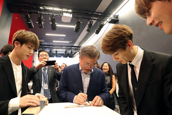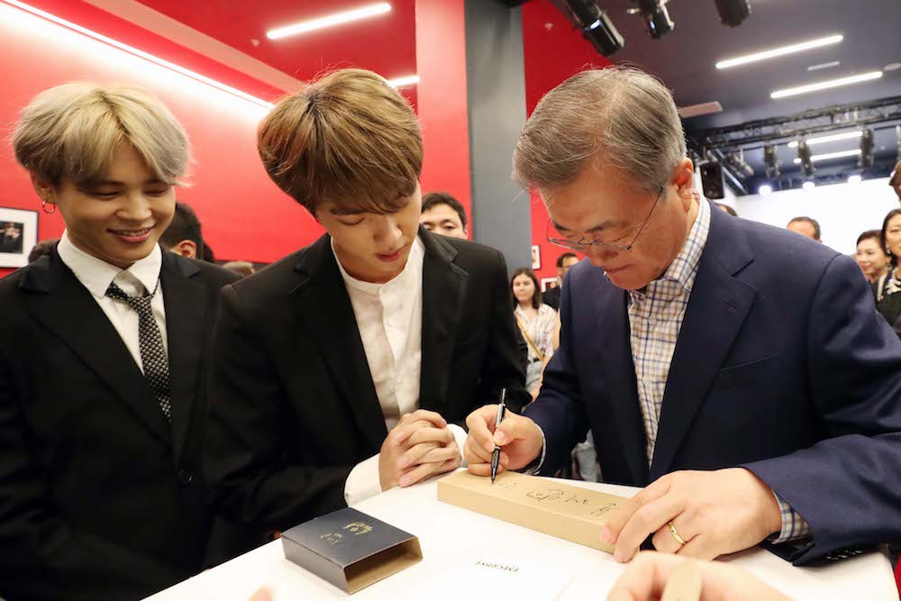 청와대 방명록 서명에 사용된 펜이 바로 제나일의 작품이었습니다. - 2021년 문재인 대통령 - BTS 특별사절 위촉식