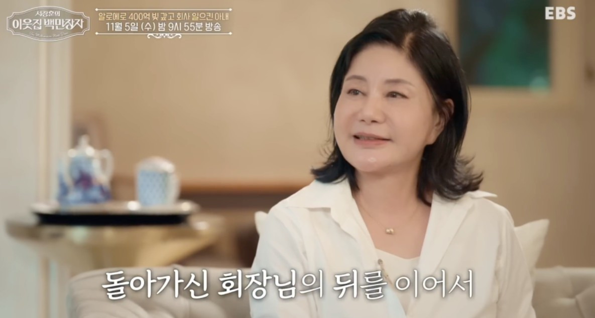 2025년 EBS ‘서장훈의 이웃집 백만장자’에 출연하면서 그녀의 일상과 가치관이 대중에게 공개되었습니다. 방송에서는 CEO로서의 강인한 면모뿐 아니라, 어머니로서의 따뜻함, 인생의 아픔을 겪은 한 여성으로서의 진솔함이 드러났습니다. 방송 속 집과 일상, 사회공헌 철학이 공개되며 ‘성공한 여성 CEO’ 그 이상의 인간적인 울림을 전했습니다.