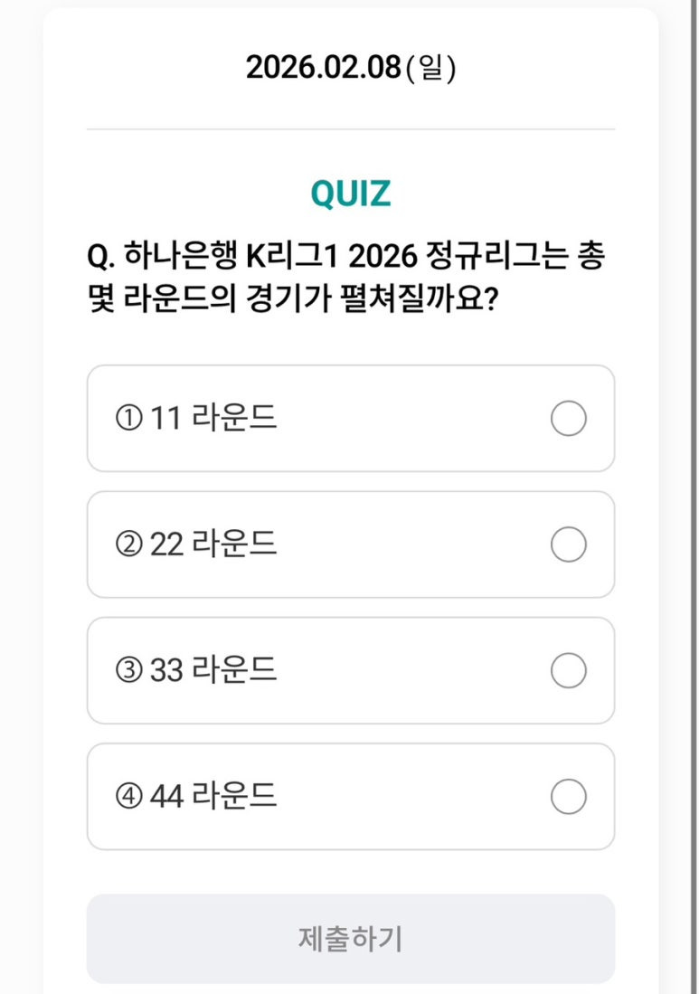 하나원큐 축구퀴즈 2월 8일 정답은 33라운드이며, 이는 K리그1 정규리그 운영 구조를 정확히 이해하고 있다면 어렵지 않게 맞힐 수 있는 문제였습니다. 이 퀴즈는 단순한 오락을 넘어, 축구 정보 습득과 앱테크 리워드를 동시에 제공하는 구조를 갖추고 있다는 점에서 의미가 큽니다.
