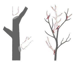- 교차하거나 안쪽으로 향한 가지를 제거
