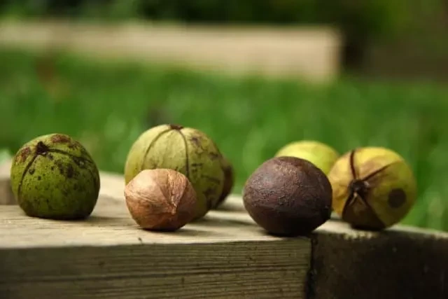 호두는 외피가 2/3 이상 갈라지고, 열매가 자연 낙과될 때가 가장 적기입니다. 억지로 따면 미숙한 상태라 색이 탁하고 맛이 덜합니다. 수확 방법은 다음과 같습니다.