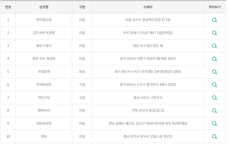 • 부산 동래구 안남로 89-1 ‘금두꺼비 복권방’ (자동)