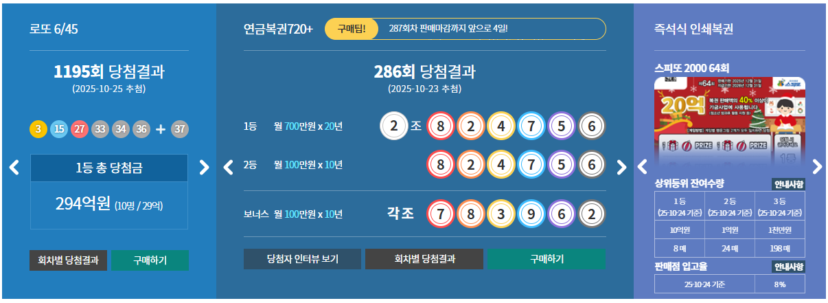 2025년 10월 25일 저녁 8시 35분, MBC ‘생방송 행복드림 로또 6/45’를 통해 제1195회 로또 당첨번호가 공개되었습니다. 이번 회차는 자동추첨기로 진행된 전산 무작위 방식으로 번호가 뽑혔으며, 공정성 검증을 거쳐 실시간 방송 및 동행복권 홈페이지에 동시에 발표되었습니다. 매주 토요일마다 진행되는 로또 추첨은 단순한 복권 이상의 사회적 관심사로 자리 잡고 있으며, 회차별 당첨지역과 당첨금 규모는 여전히 많은 국민의 이목을 끕니다.