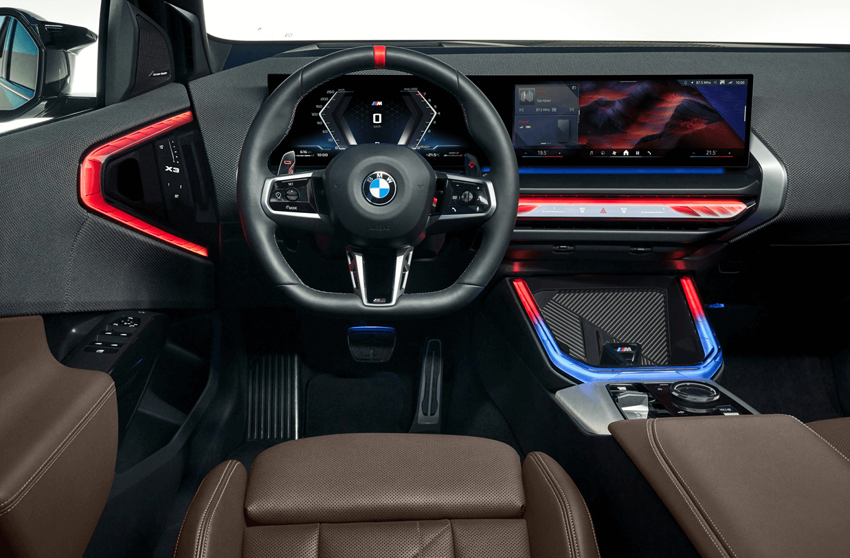BMW X3의 실내는 고급 소재와 최신 디지털 기술이 조화를 이루는 공간으로 설계되었습니다.