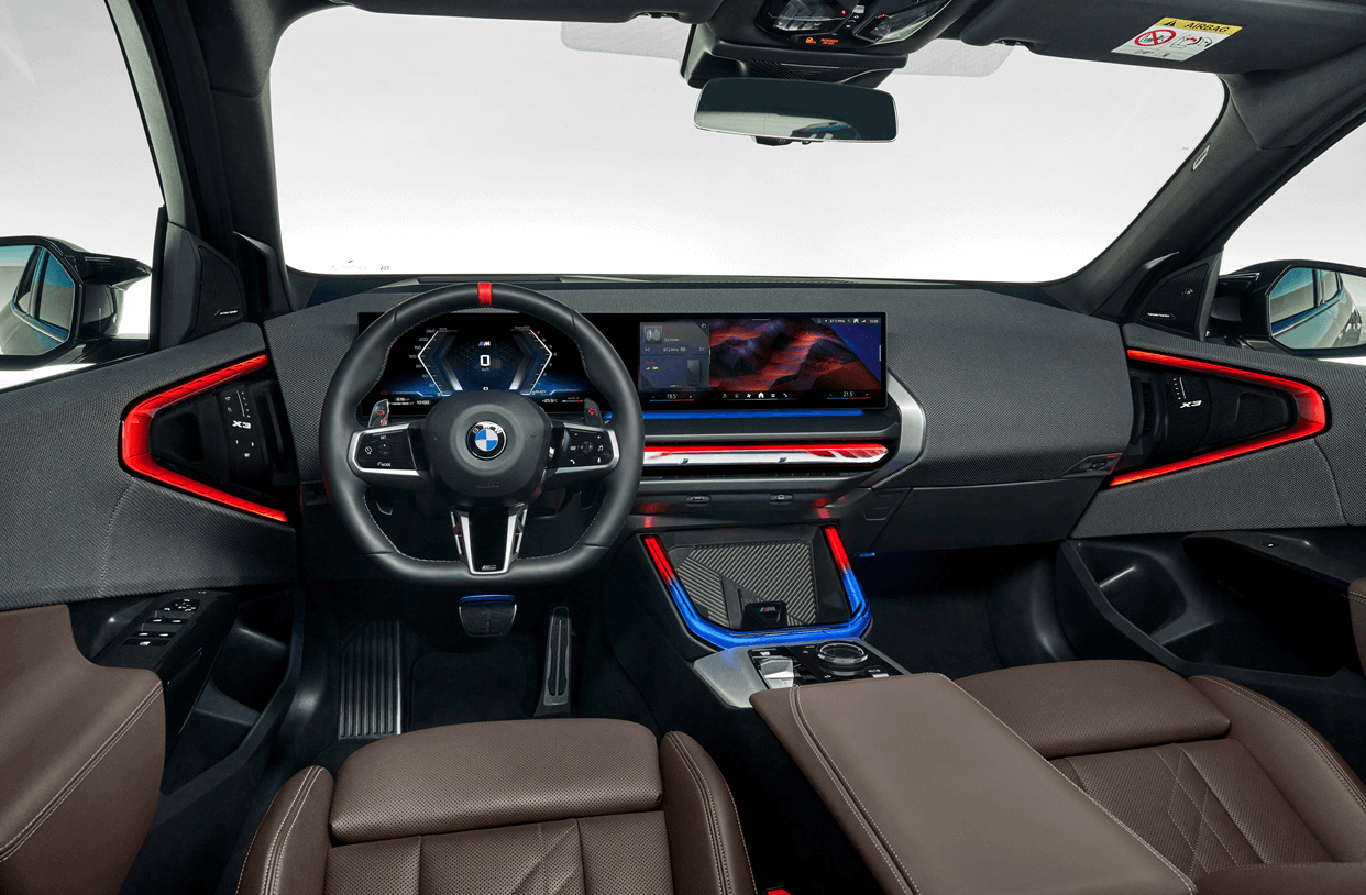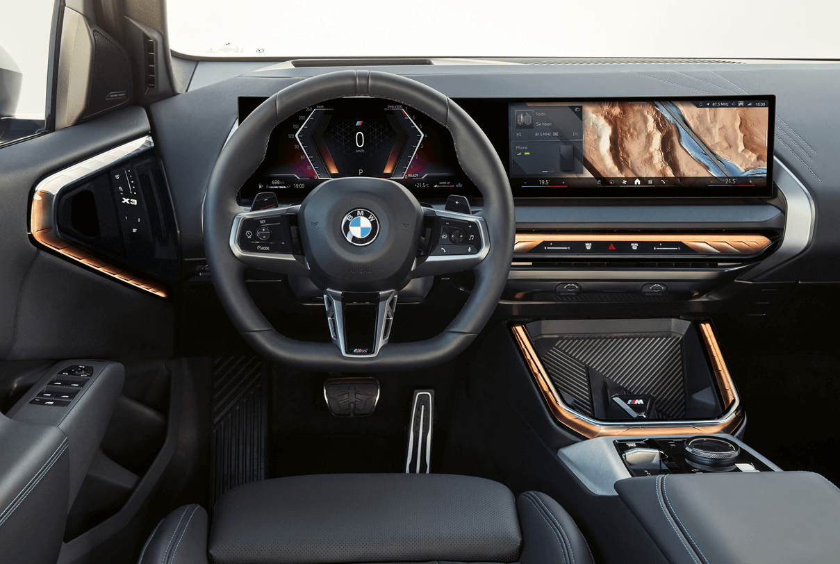 BMW X3의 실내는 고급 소재와 최신 디지털 기술이 조화를 이루는 공간으로 설계되었습니다.